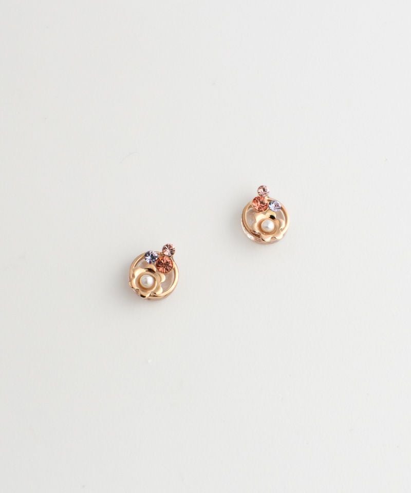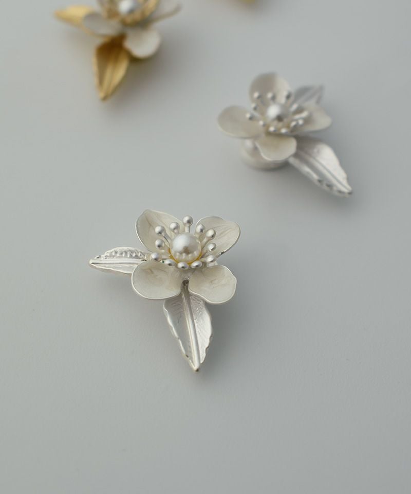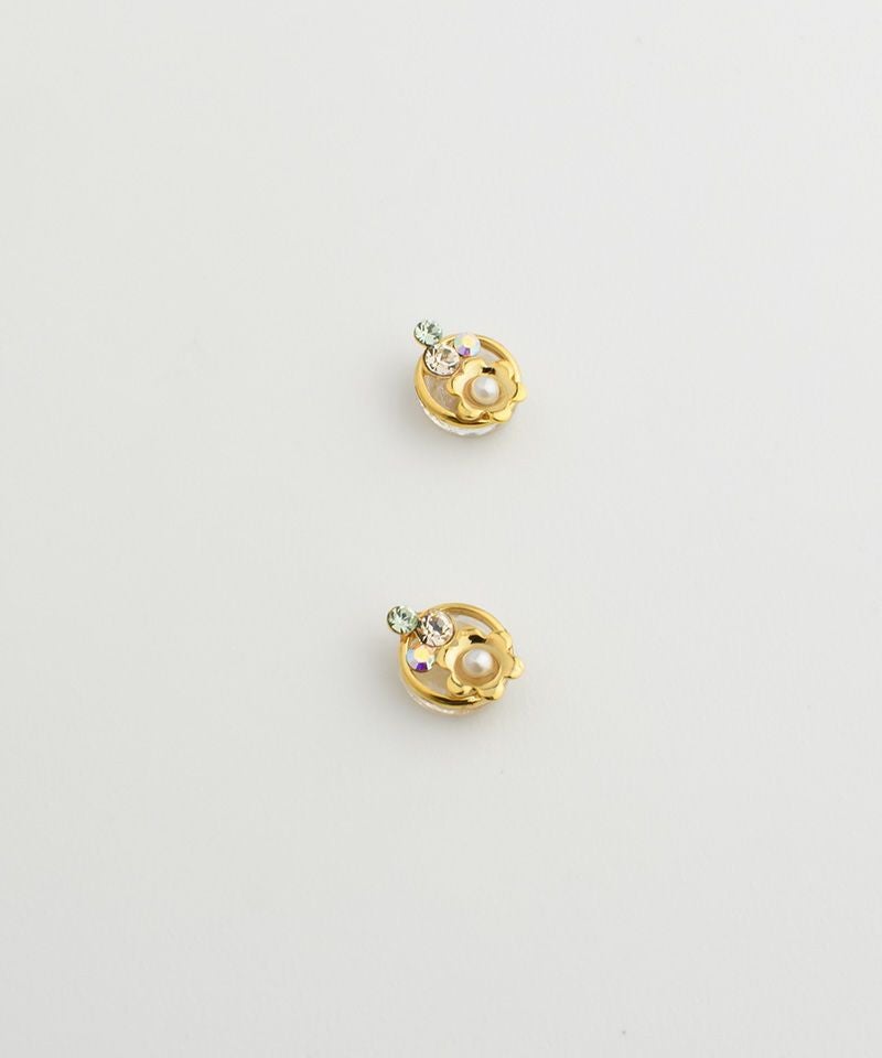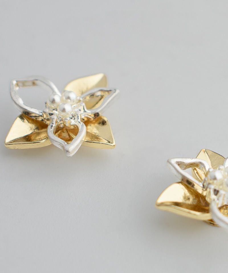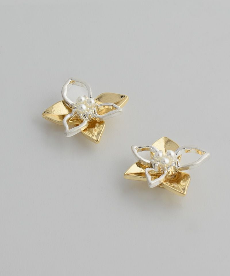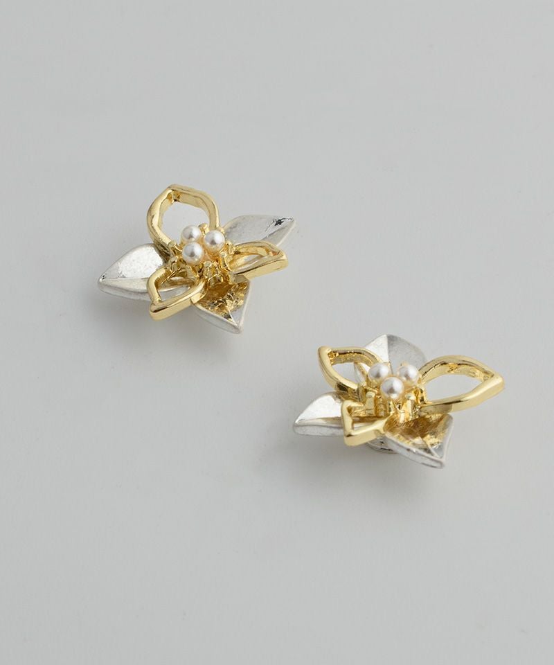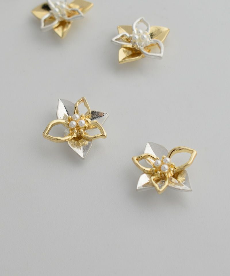 【ノンニッケル】一粒パール×ニュアンスメタルフラワー