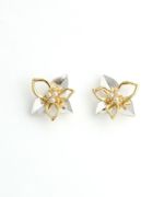ゴールドとシルバーのメタルフラワーが印象的な耳元に◎