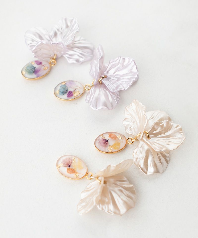 ドライフラワーと淡い花びらの組み合わせが上品な可愛さに。
