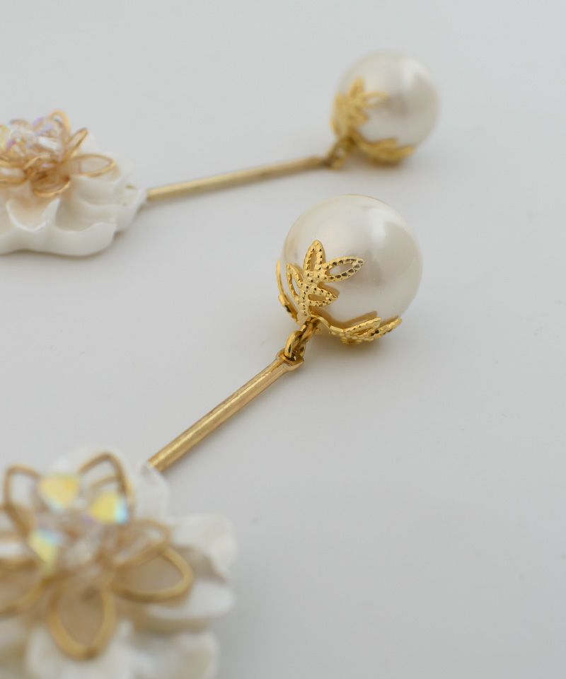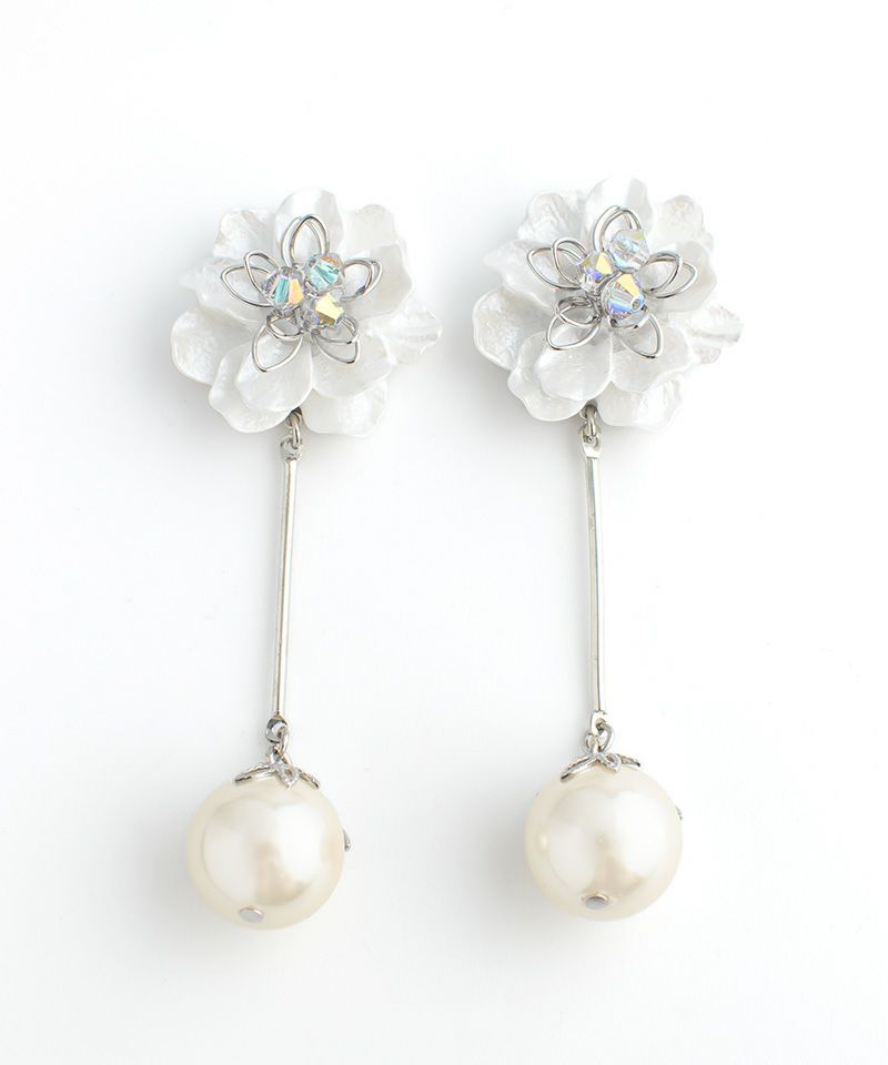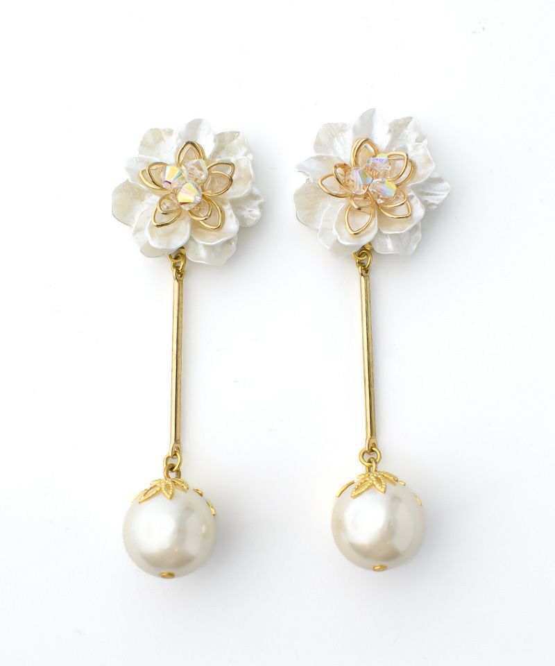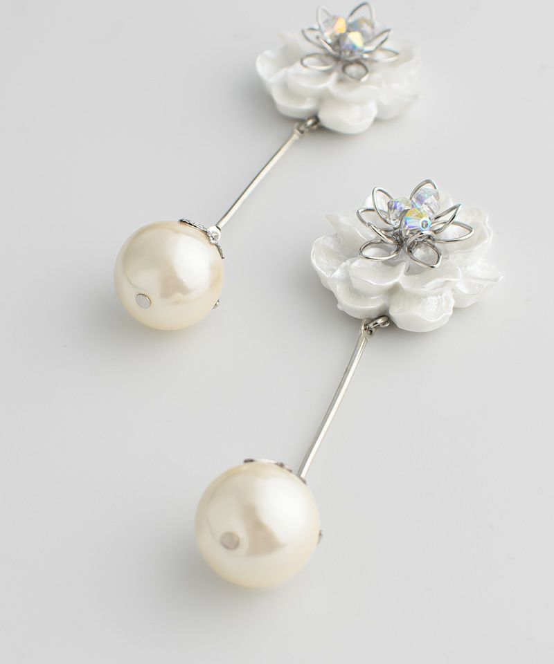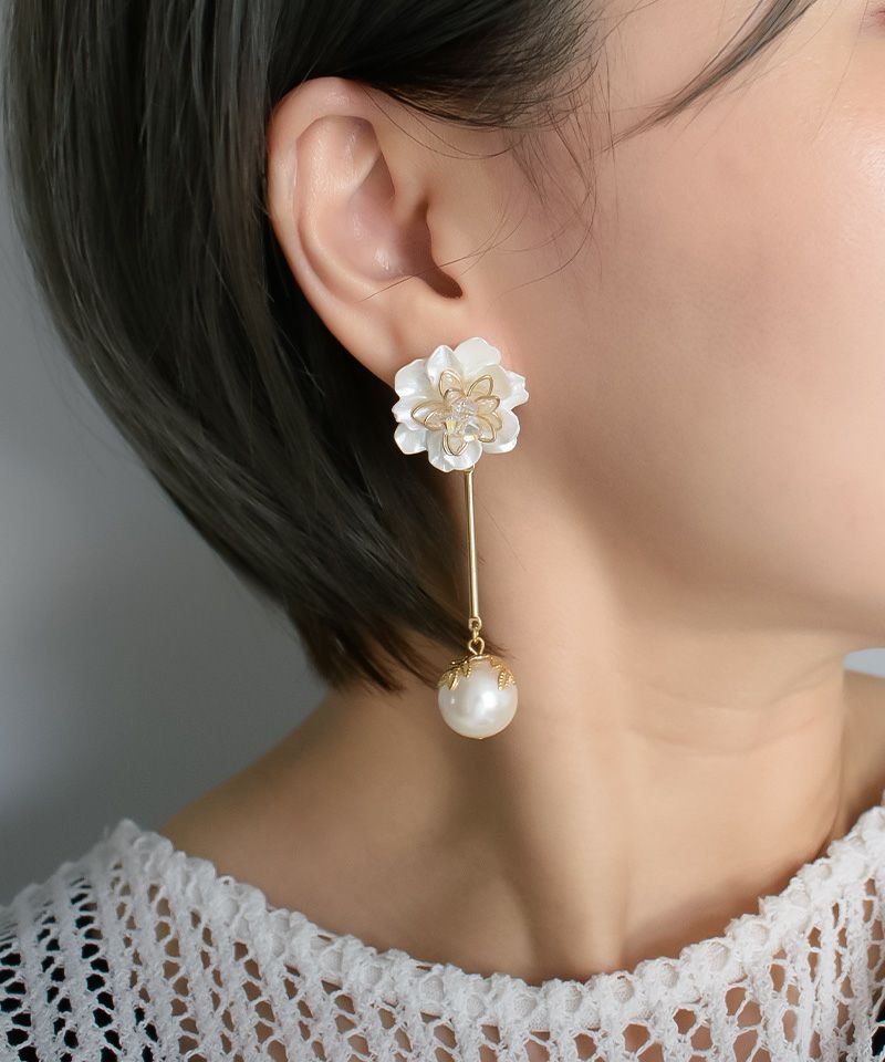 つや感のあるフラワーとパールが揺れて上品な耳元にしてくれます♪
