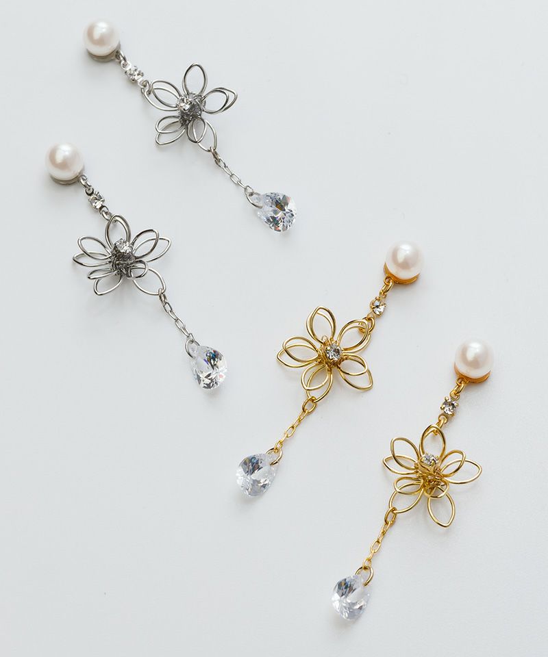 動くたび揺れるジルコニアが華やかな耳元に仕上げてくれます。