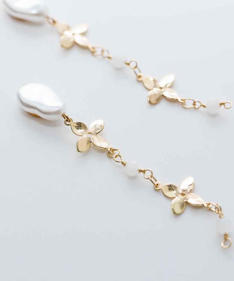 ニュアンスパールのトップに連なったメタルフラワーが存在感のあるアイテム!