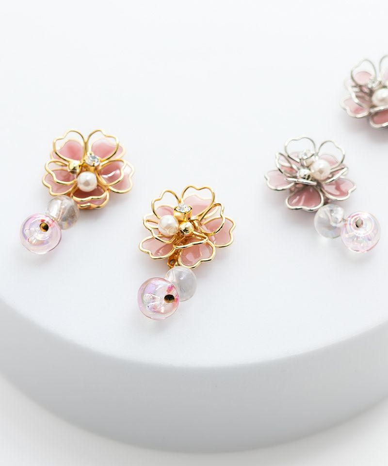 ビーズ揺らめく桜ピアス