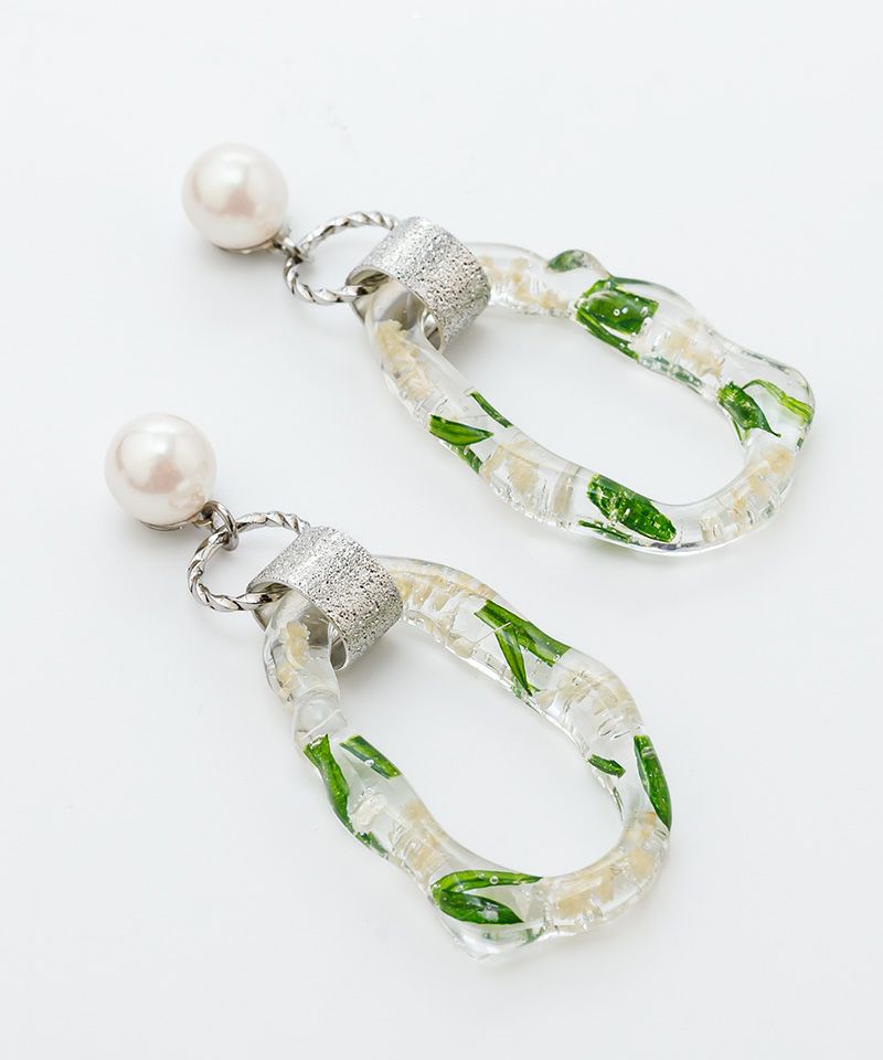 ミモザのつまったクリアのニュアンスフープが個性的なアイテム!
