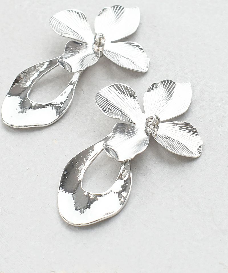 花びらととフープをドッキングした辛口ミックスアイテム。大ぶりだけど邪魔にならないちょうどいい大きさのピアスです。