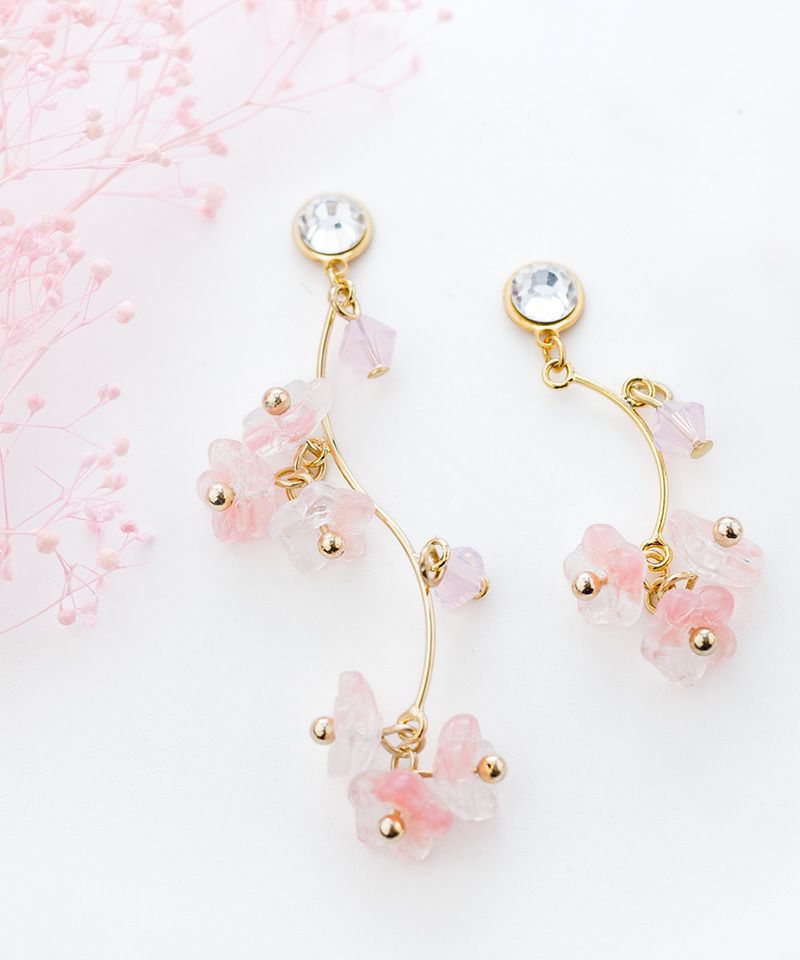 ビーズ揺らめく桜ピアス