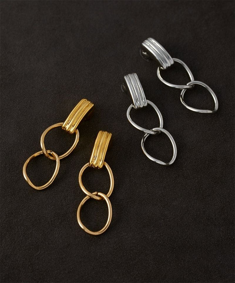 シンプルなプレートにニュアンスフープが連なったデザイン。