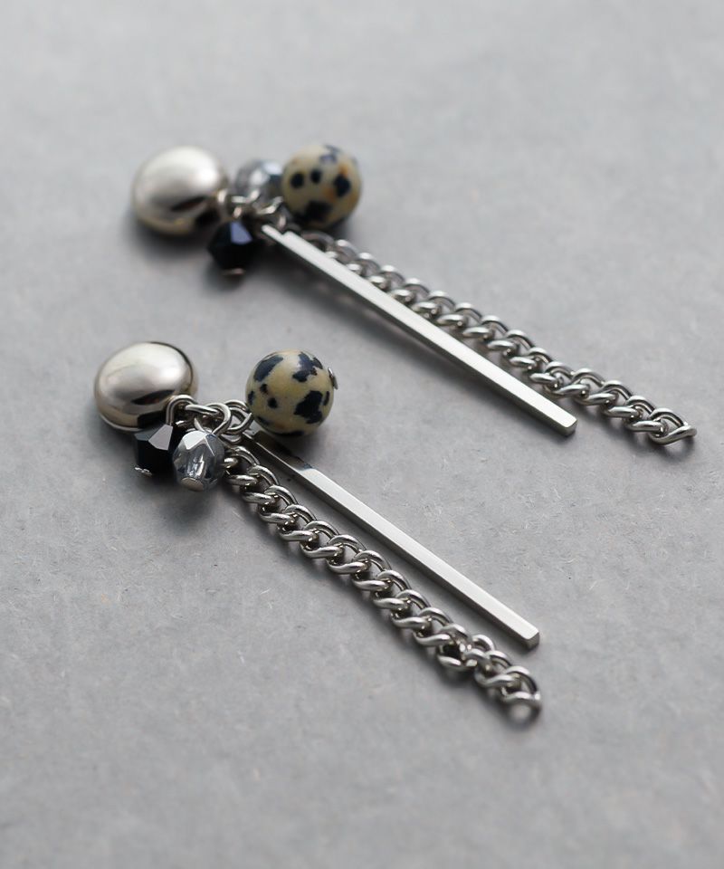 ダルメシアンビーズがポイントです。 少し太めのチェーンが存在感あります。