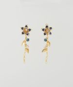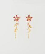花びらの中心に輝くストーンと、可憐に揺れるリーフモチーフが印象的なアイテム。
