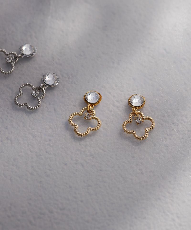ジルコニアが揺らめくクローバーモチーフの短めデザイン♪