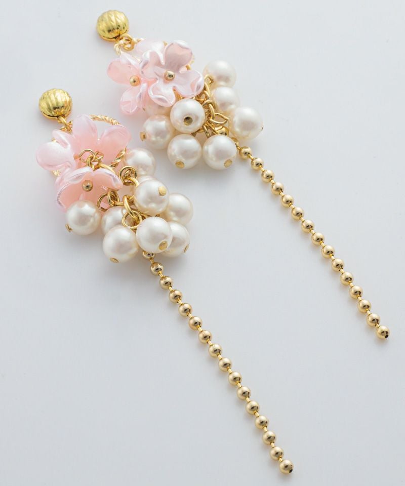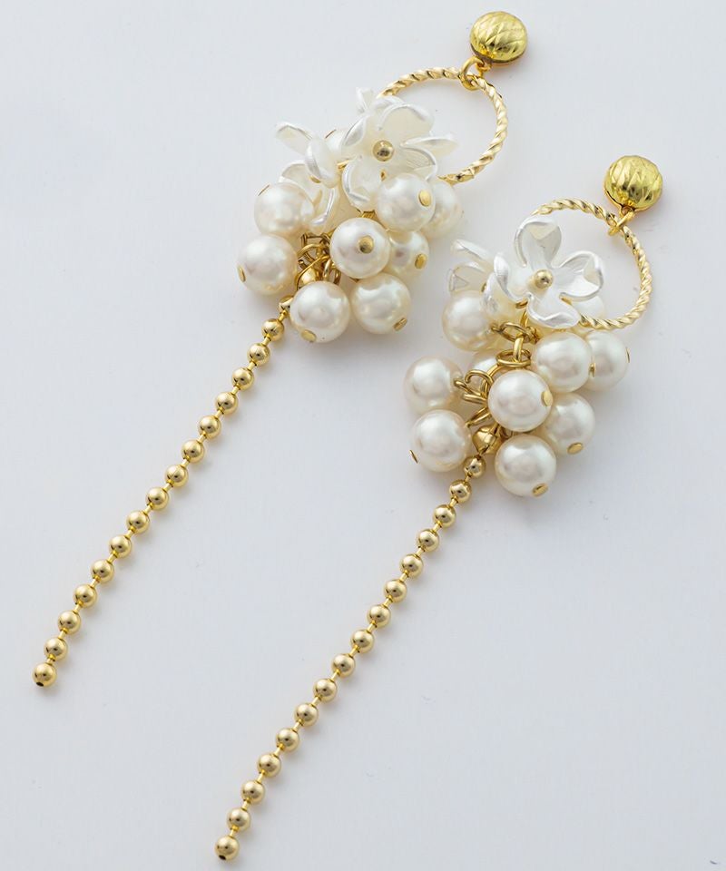 つぶつぶパールのフラワーメタルチェーン