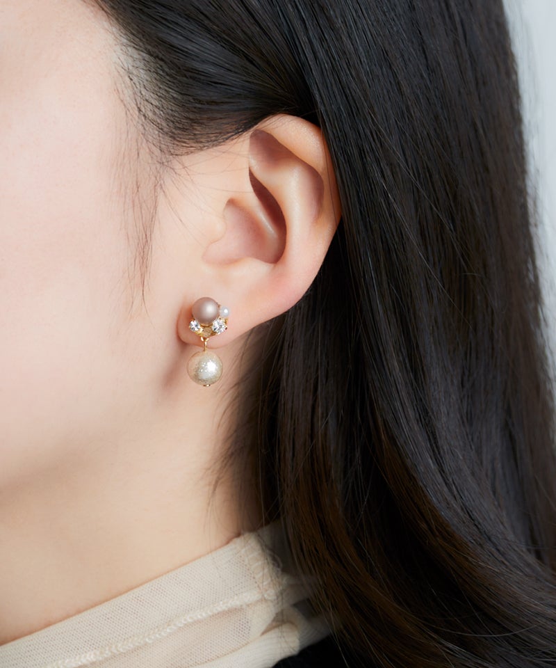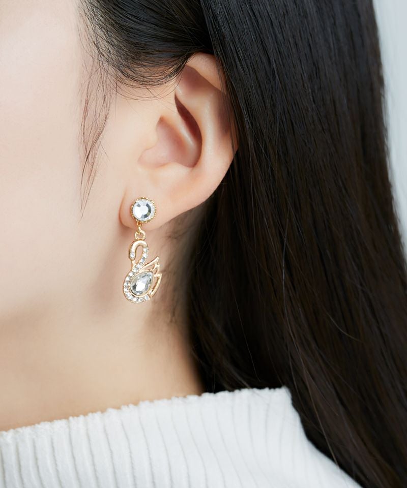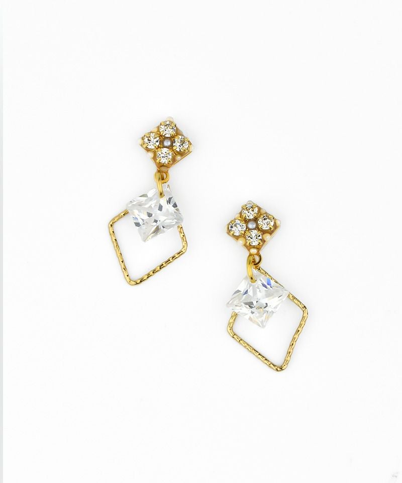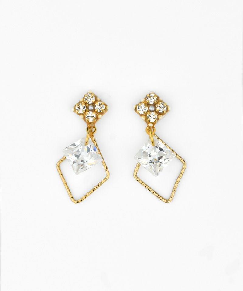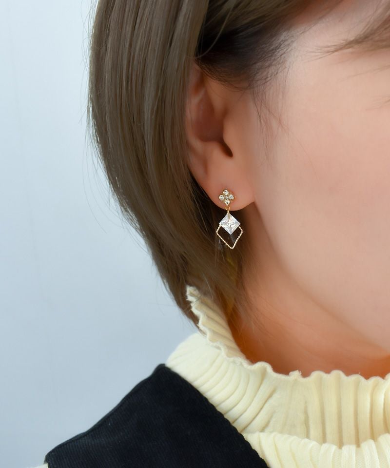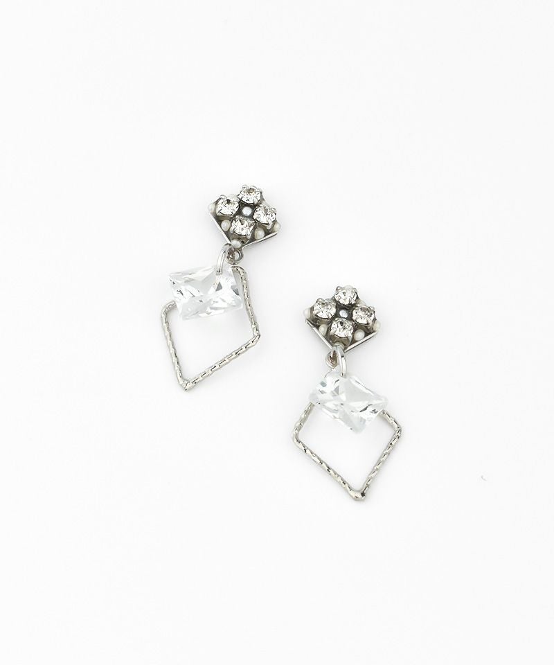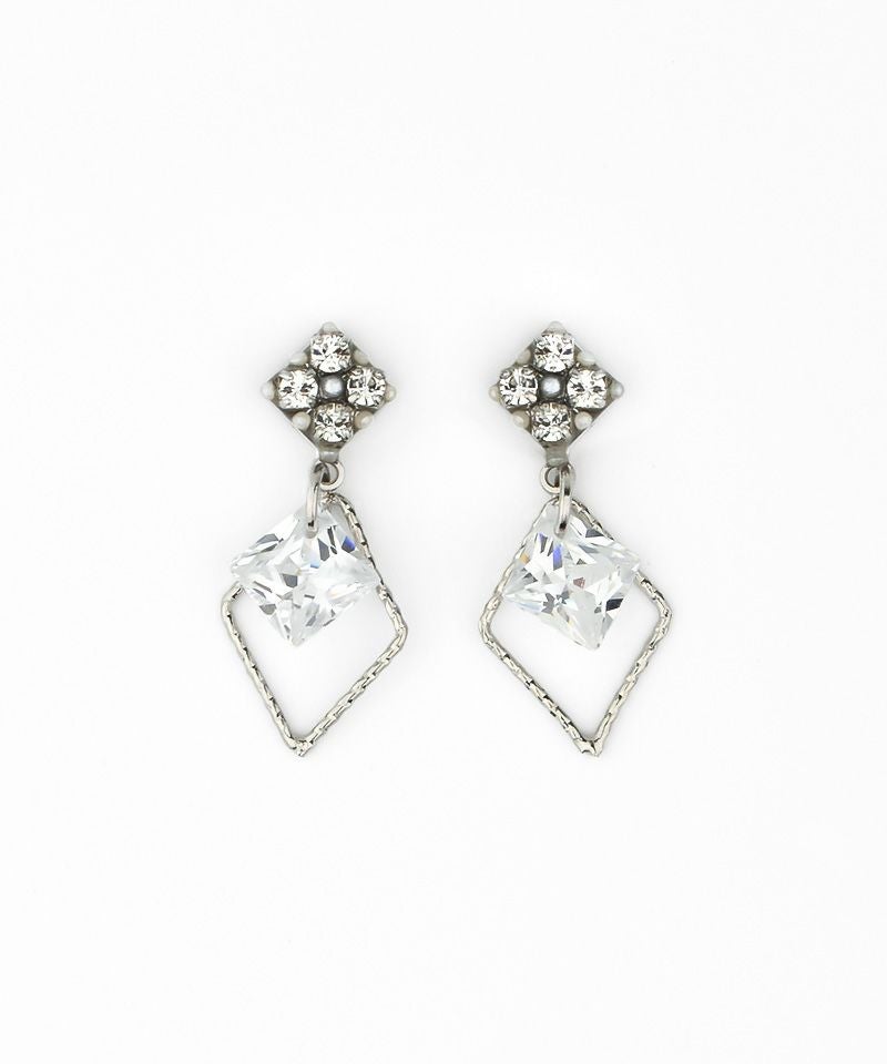 【キュービックジルコニア】きらめくリボンと雫クリスタルのピアス