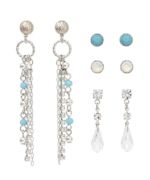 大好きな、ターコイズピアスがセットになってるなんて買うしかない!って感じです(笑) 揺れるターコイズピアスは、長すぎす短すぎすの程よい長さで、とても綺麗にゆれます。 セットのピアス達と重ね着けすると、スッキリまとまり良い感じ。 極小のシールの貼り替えは大変だけど、貼るととっても格好良いですね!