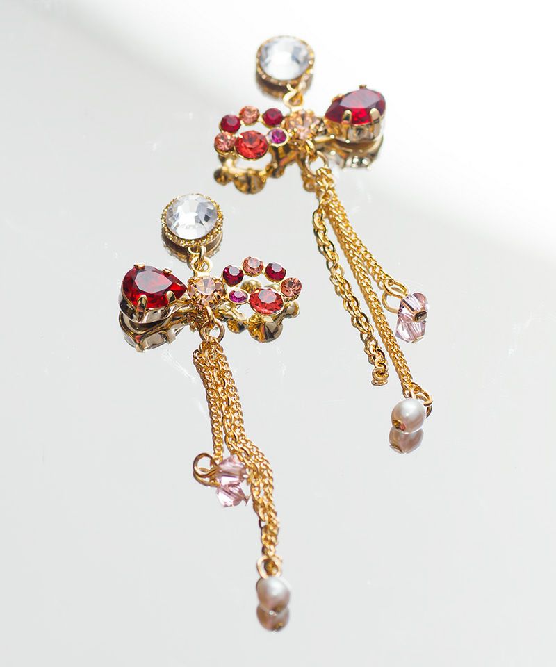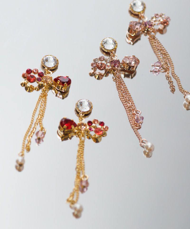 リボンの下にのびる3つのチェーンは、あえて不揃いに仕上げているところがおしゃれポイント♪