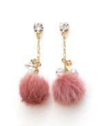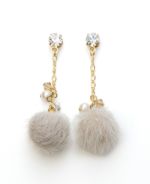 小ぶりなファーがコロンとしていてカワイイ素敵なピアスです♪ 今秋流行カラーのブラウンコーデに活躍してくれそうです♪ 長めのチェーンについているパールビジューが揺れ動く感じもとても華やかです!