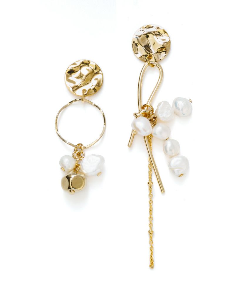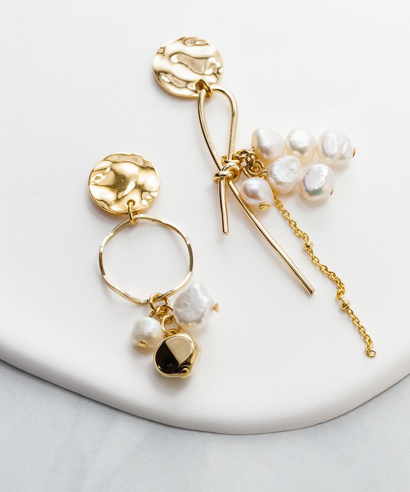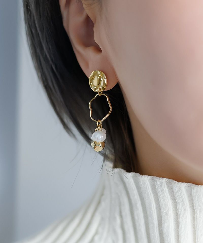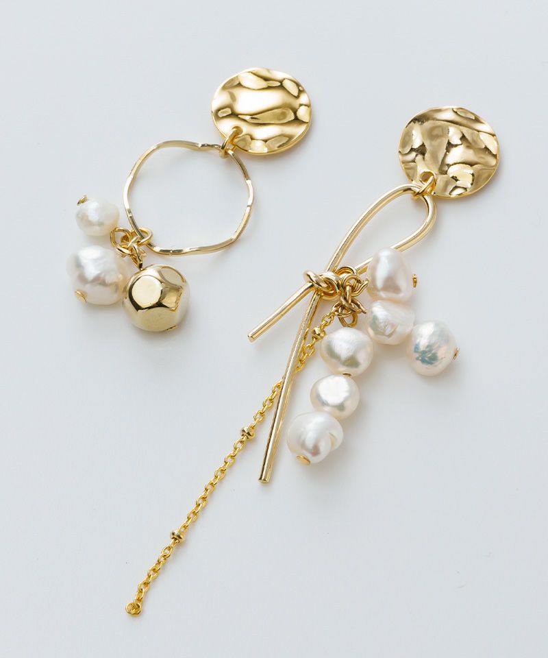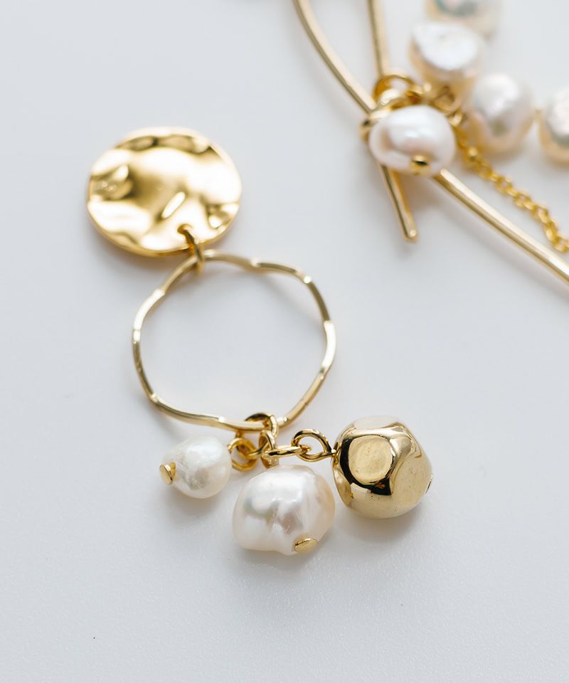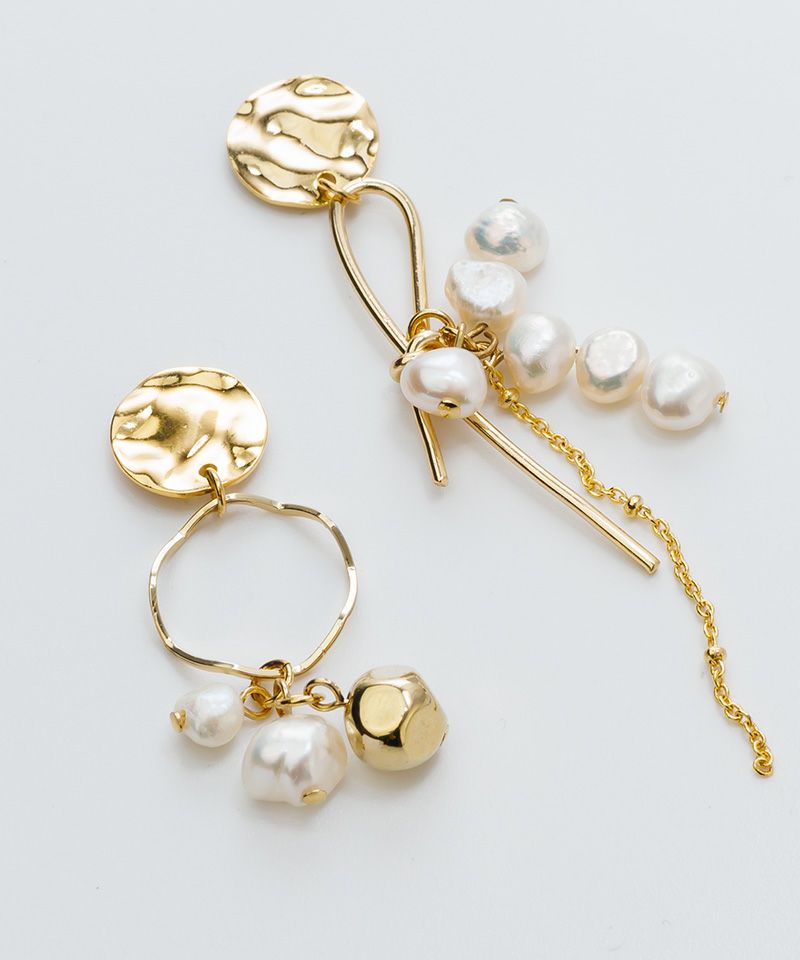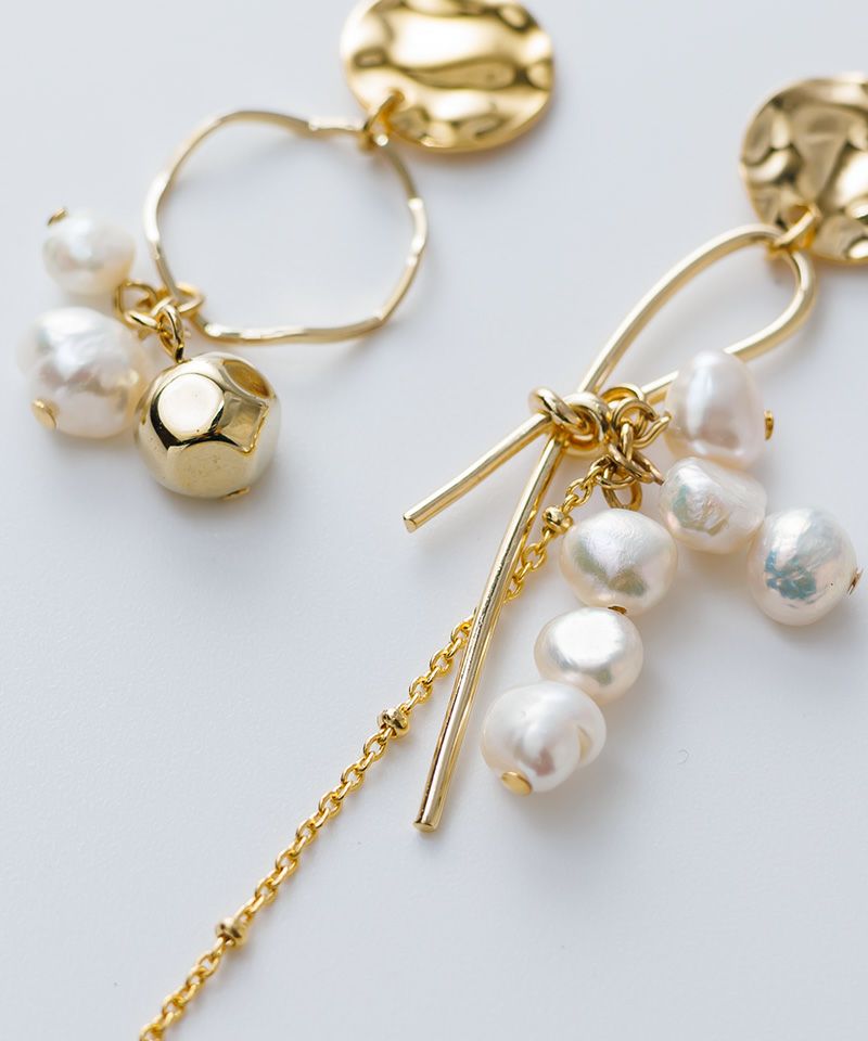 メタルの艶めきと淡水パールの柔らかさがこなれ感を演出してくれるアイテム。
