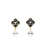小ぶりで、とってもエレガントなピアスです。 黒のお花の中央の小さなパールがとても愛らしいです。