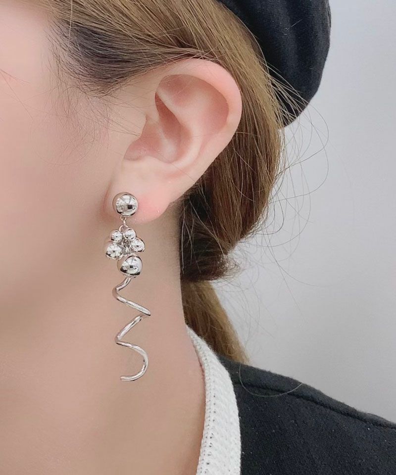 光沢感のあるメタルボールとスパイラルが異なる動きを見せてくれます。ミディアムサイズですが耳元にインパクトを与えてくれます♪