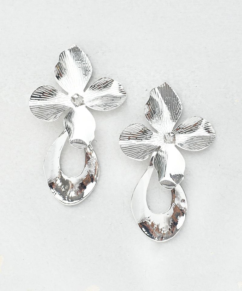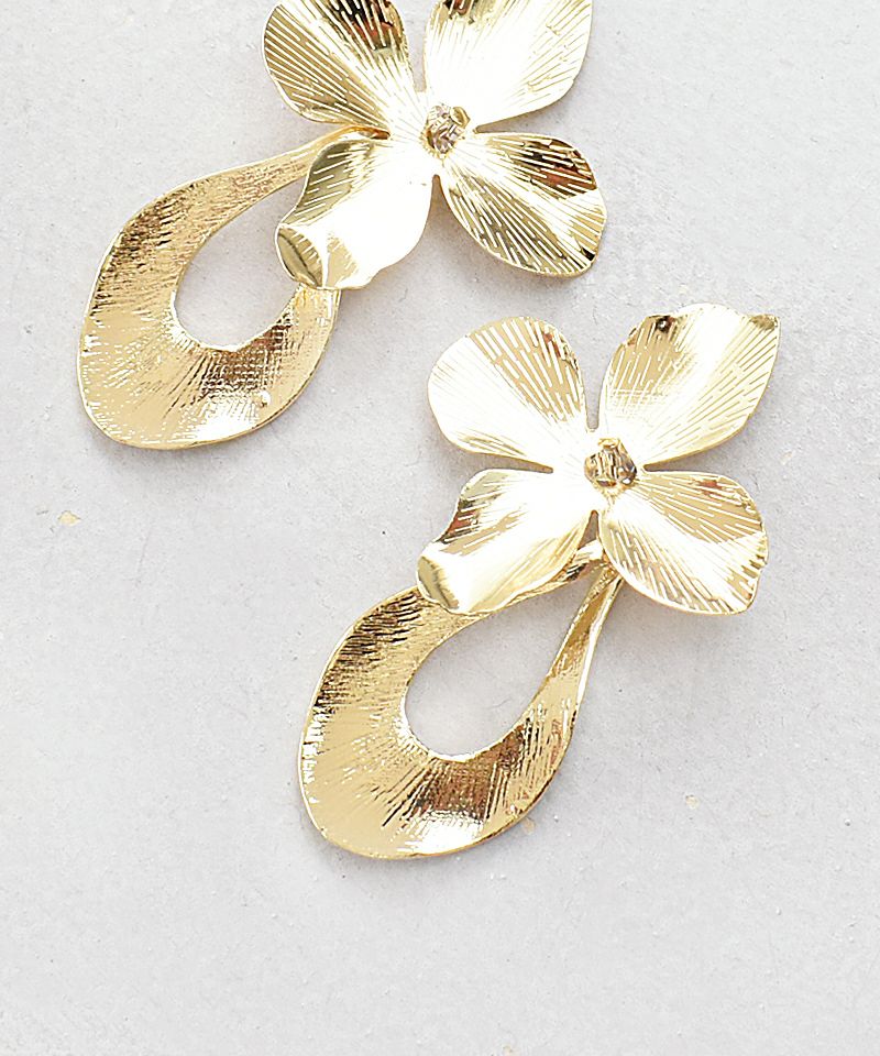 花びらととフープをドッキングした辛口ミックスアイテム。大ぶりだけど邪魔にならないちょうどいい大きさのピアスです。