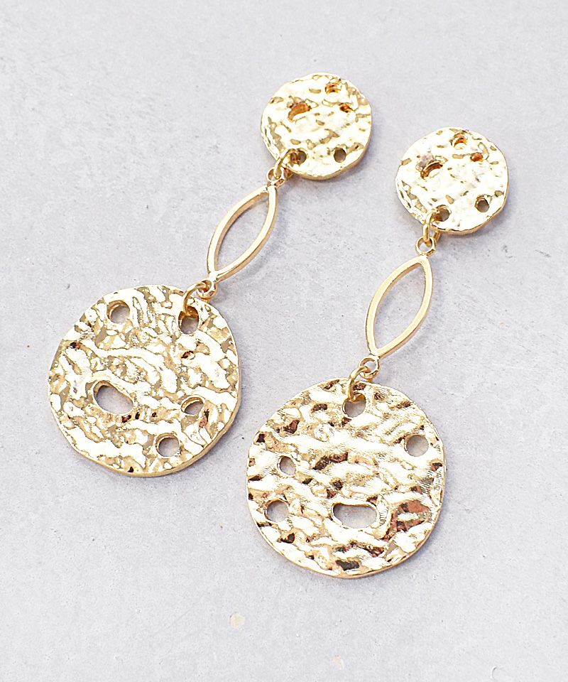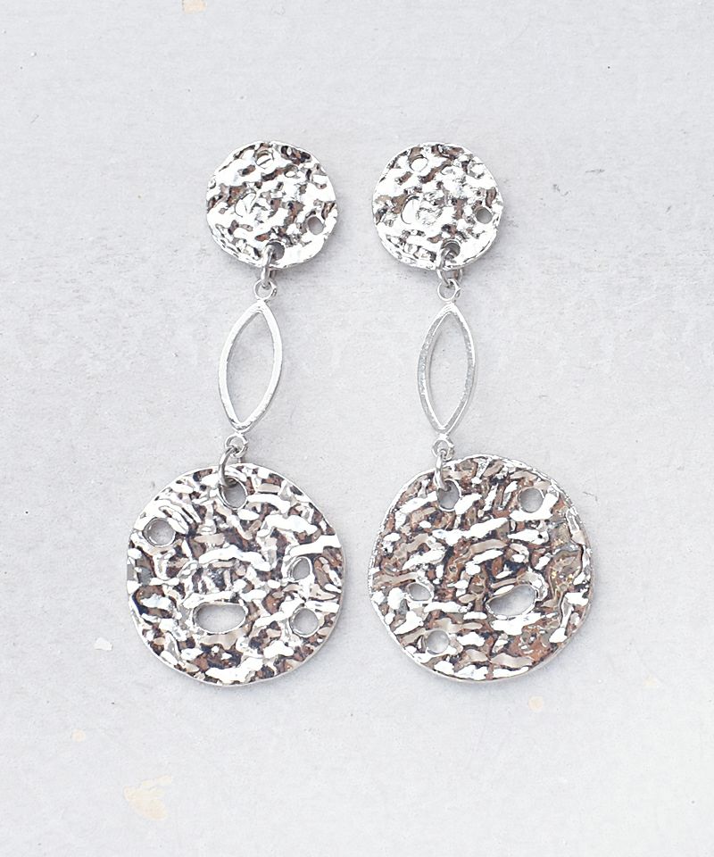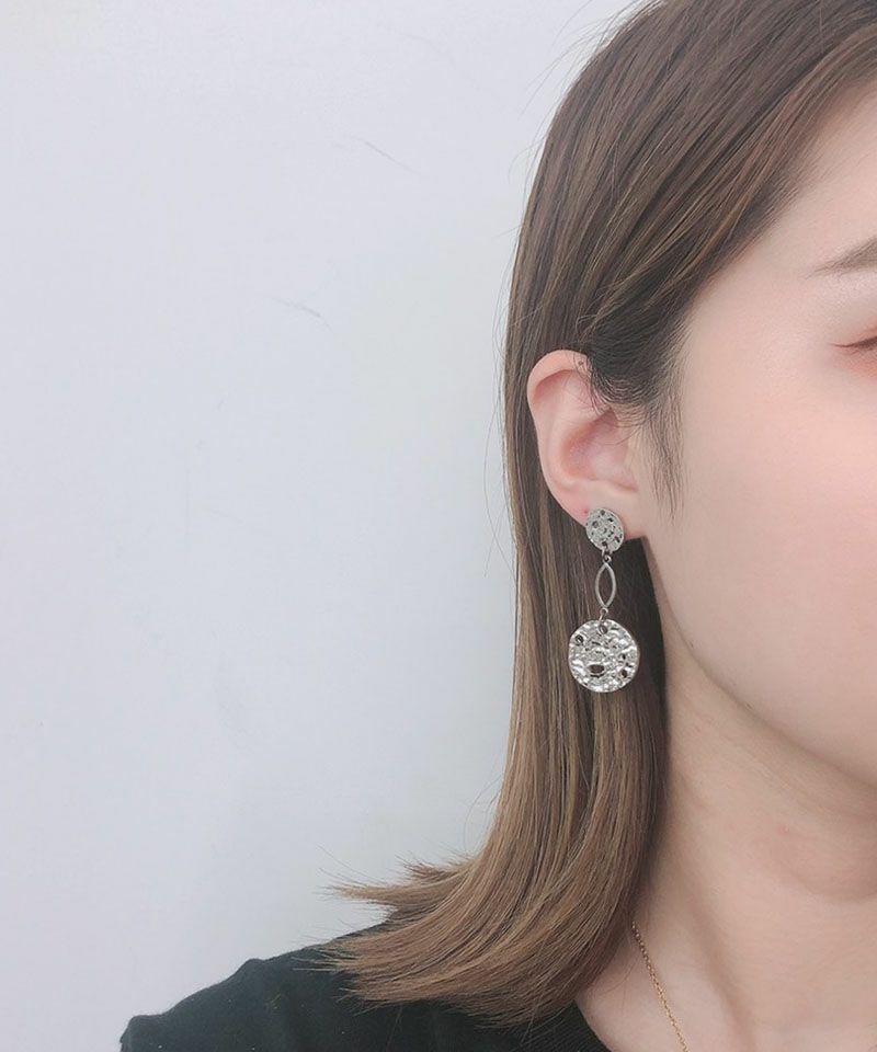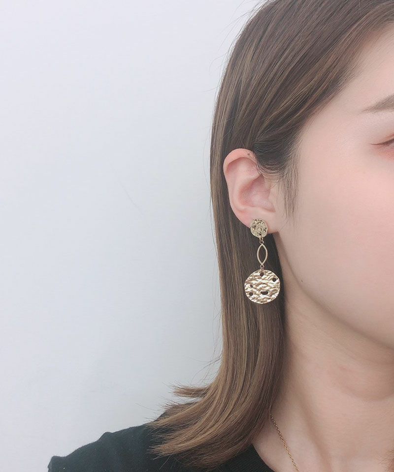エンボス素材のダブルサークルチャーム。ほどよい重みで綺麗な揺れ感が魅力。丸いフォルムは女性らしさと可愛らしさを演出してくれます。