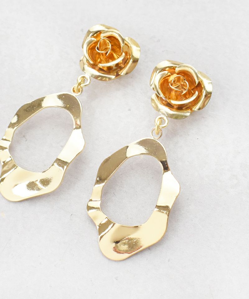 メタリックなバラの花びらはシリーズの中でも女性らしさのあるアイテムのひとつ。フェミニンなお洋服にも、クールなスタイルのアクセントにもお使い頂けます。