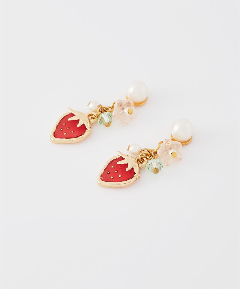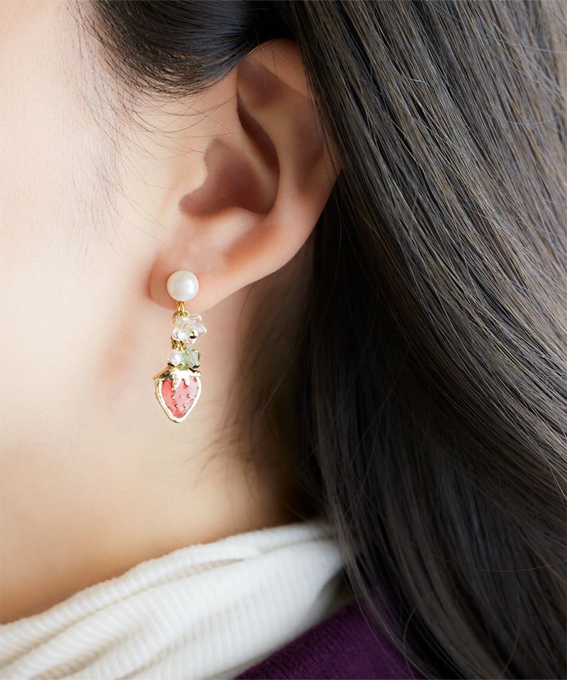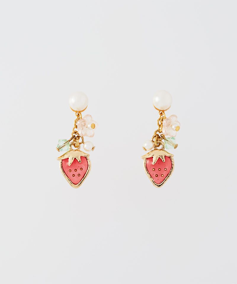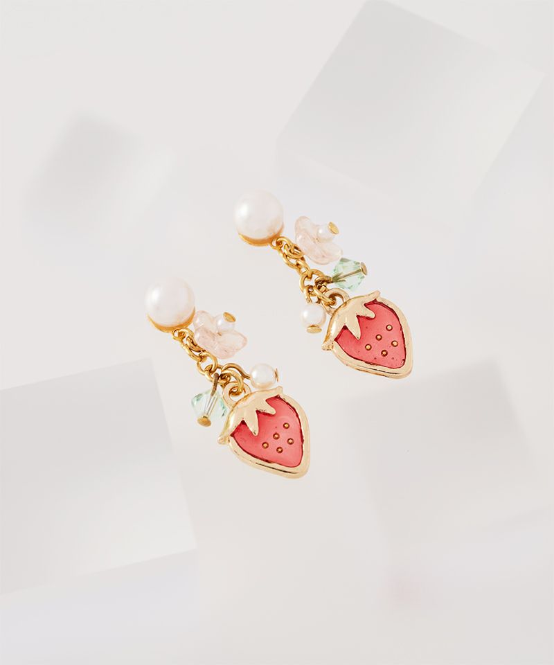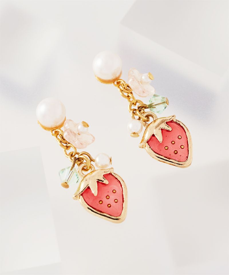 レジンの苺の上には可愛いお花と葉っぱをイメージしたビーズが揺れます♪