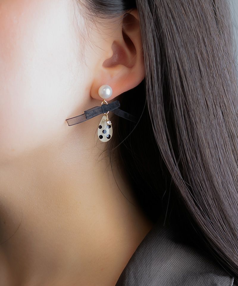 水玉模様のしずく型ストーンとオーガンジーリボンがとても可愛いアイテム☆