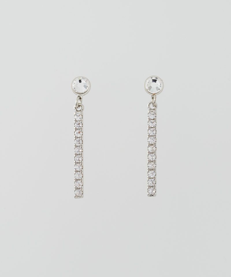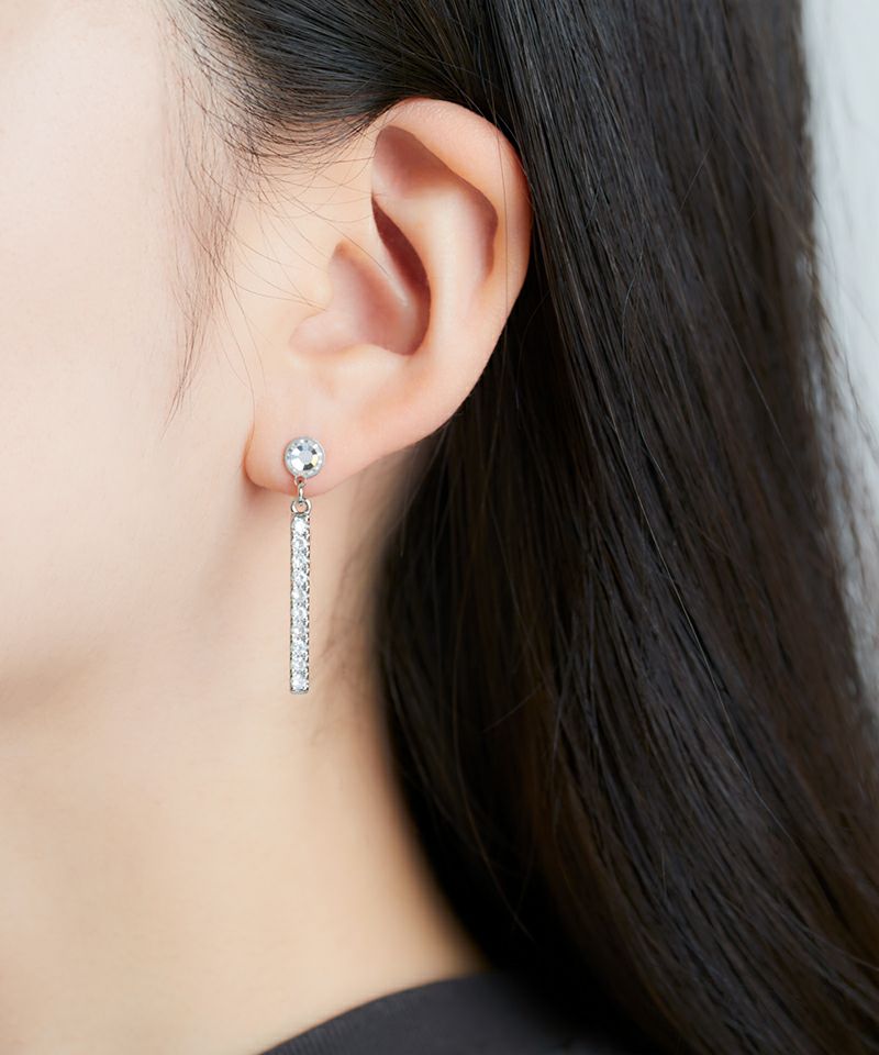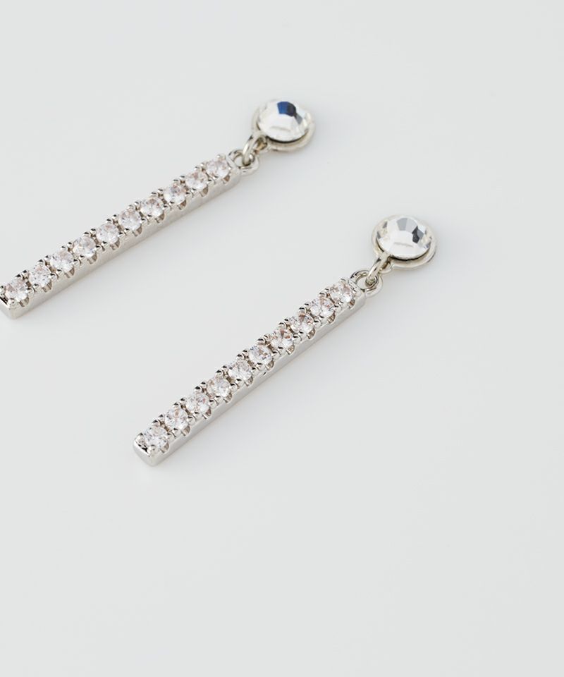 縦に連なるラインストーンが耳元で美しく輝くスティックピアス。