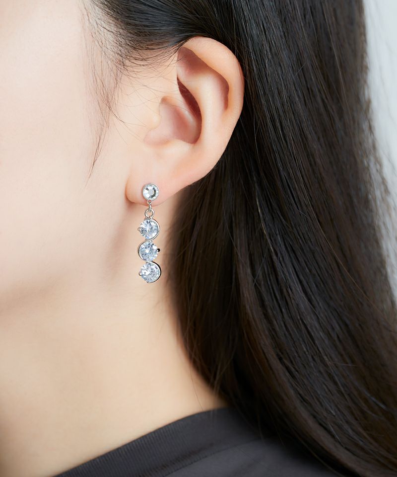 緩やかなS字ラインに3つのストーンが輝く上品なアイテム。