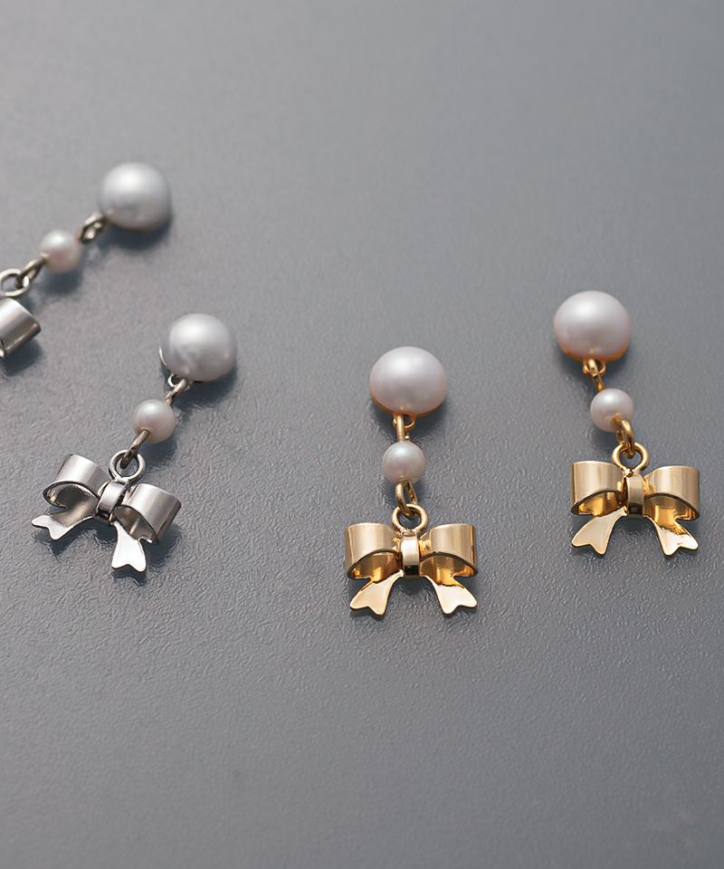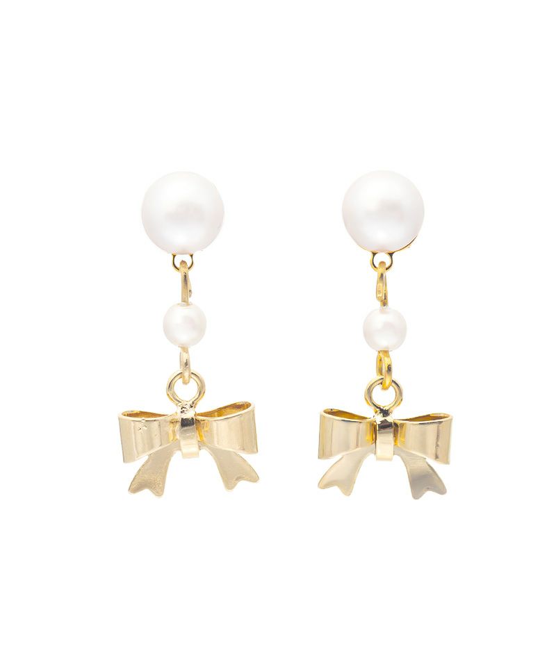 小ぶりのリボンが可愛らしく揺れてとても可愛い パールとゴールドの組み合わせが素敵