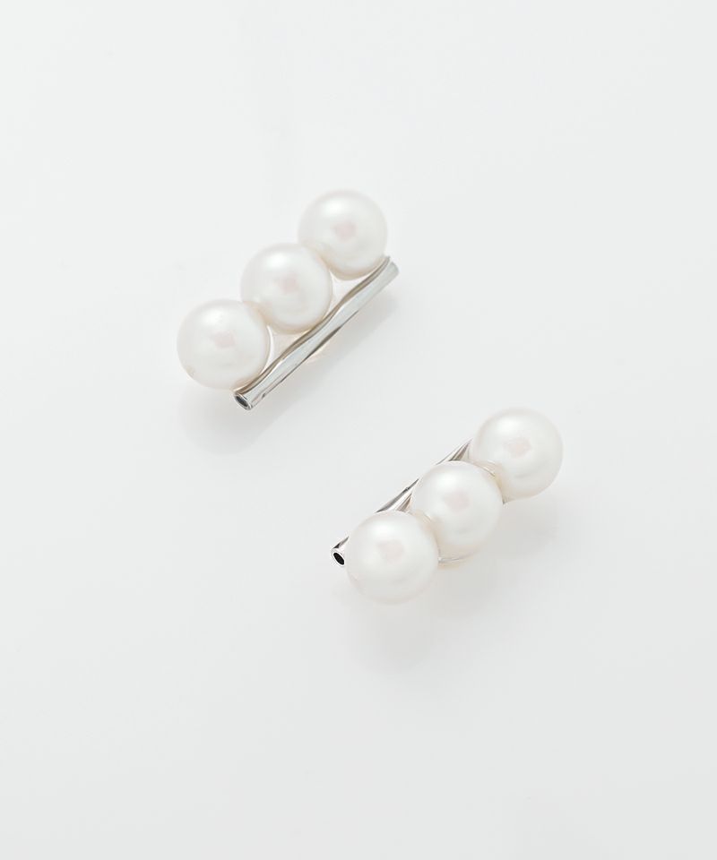 耳元に沿う形のラインパール。