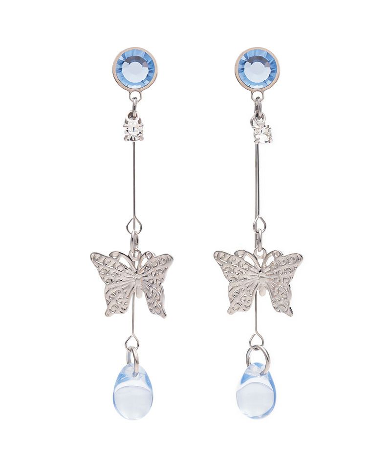 蝶々のチャームとカラービーズがユラユラ揺れて素敵です。 長さも丁度良くて周りの目を引くピアスです。