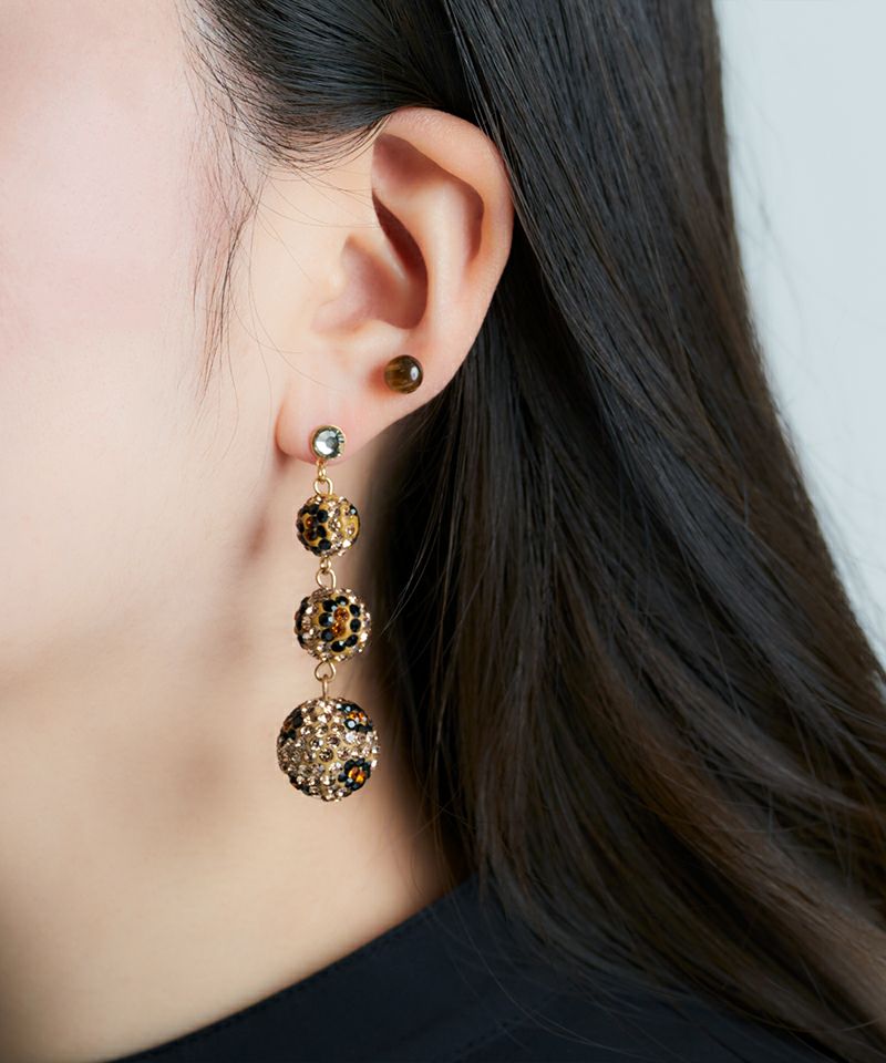 ヒョウ柄のキラキラ輝くボールが連なる、存在感たっぷりのアイテム。