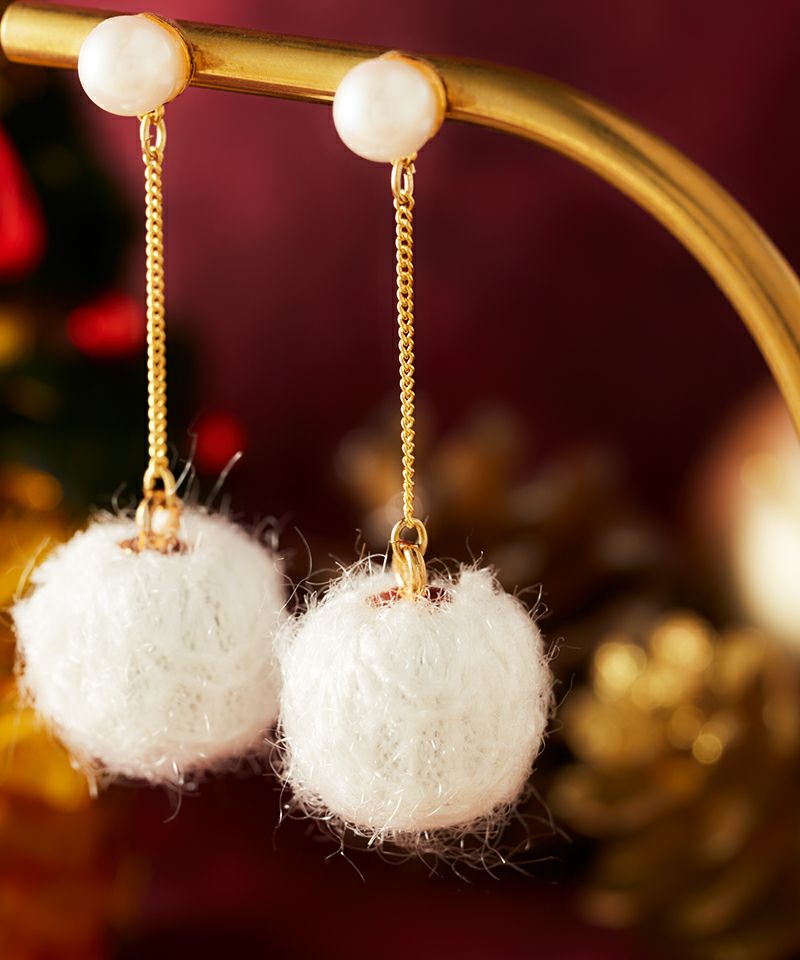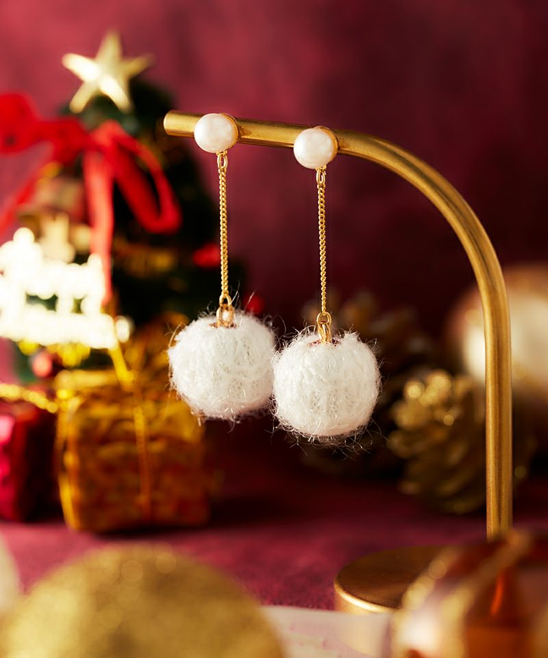 雪玉のようなニットボールが揺れる〈ニットスノーボール〉