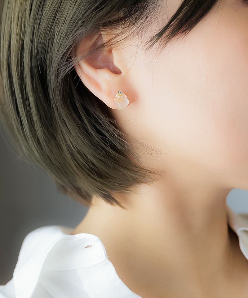 ベビーピンクの花びらとミニビジューがとってもかわいいデザイン。