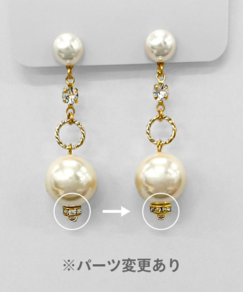パールプレートの下で大ぶりパールが揺れてとても華やかな印象のアイテムです。