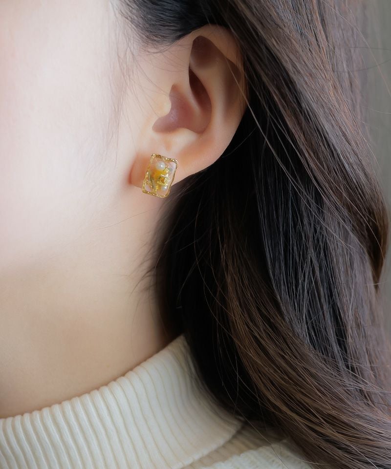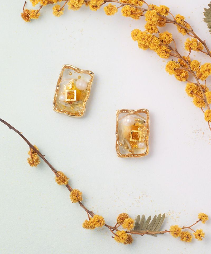 レジンの中にミモザやパールを閉じ込めたこだわりデザイン☆