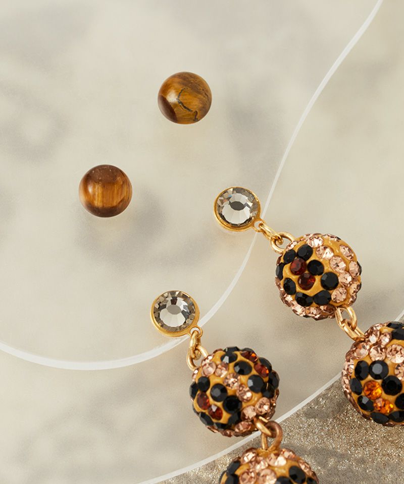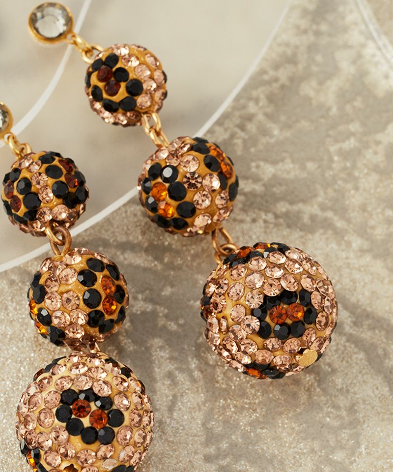 ヒョウ柄のキラキラ輝くボールが連なる、存在感たっぷりのアイテム。