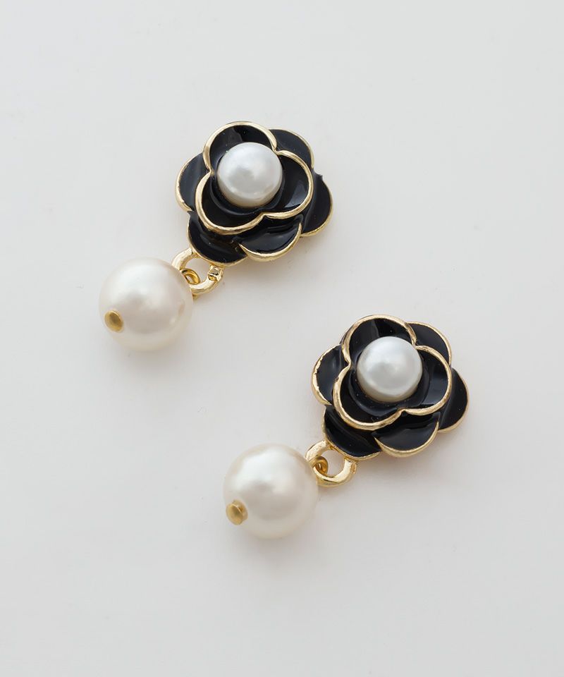 ブラックのフラワーとパールの組み合わせは、可愛らしさとエレガントのバランスが◎