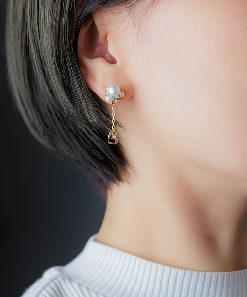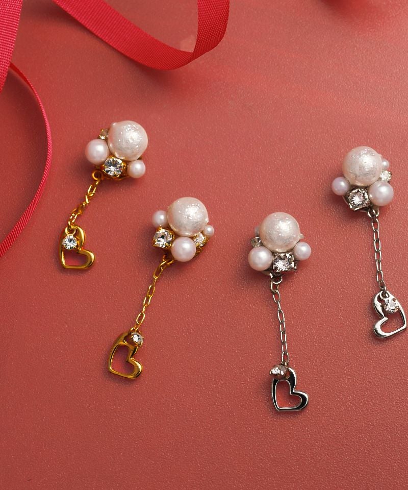シャイニーパールを組み込んだビジューの下で小さなハートモチーフがゆらゆら♪