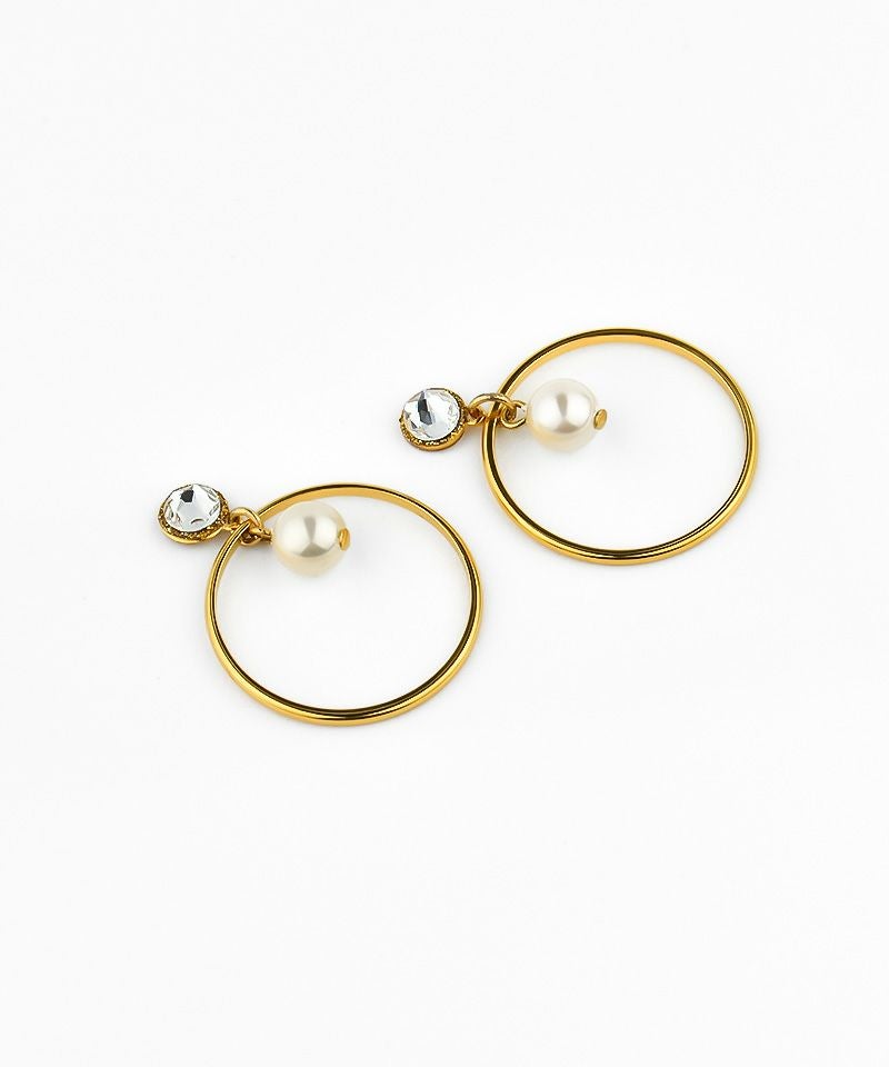 シンプルなフープにパールをあしらい、女性らしさをプラスしたデザイン。