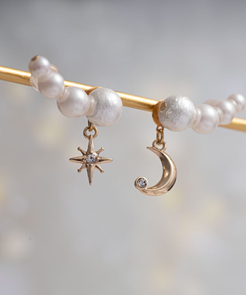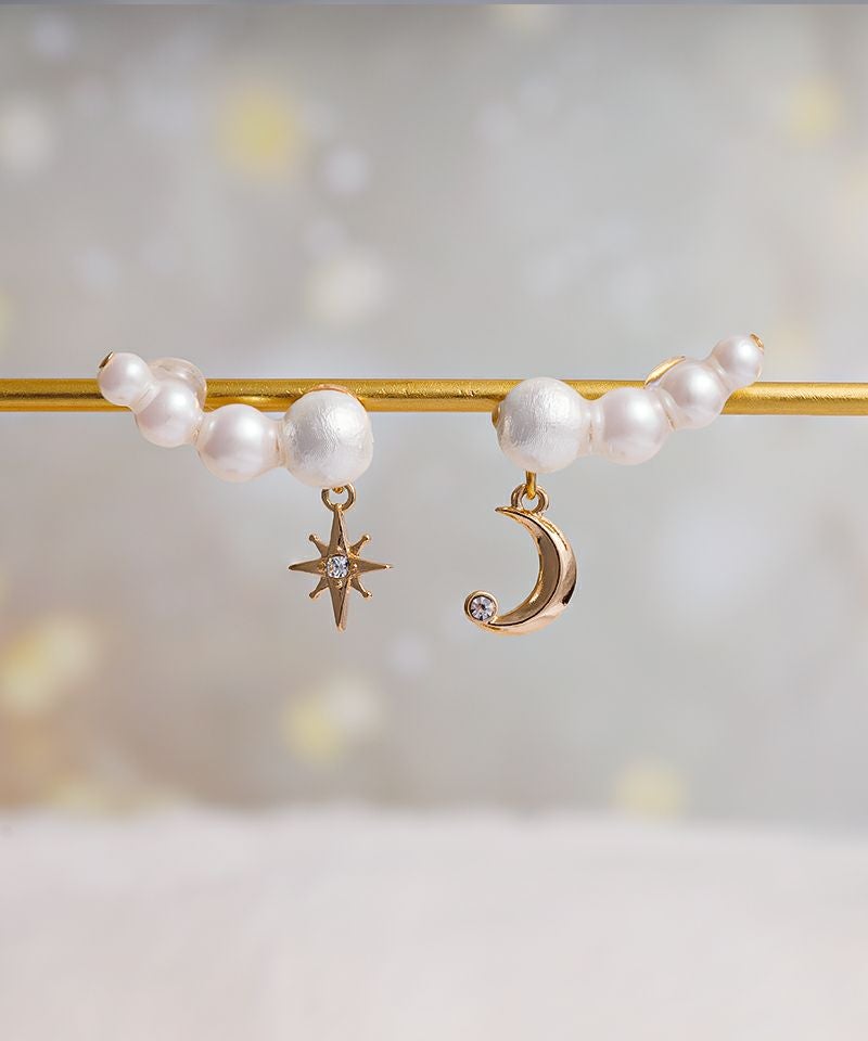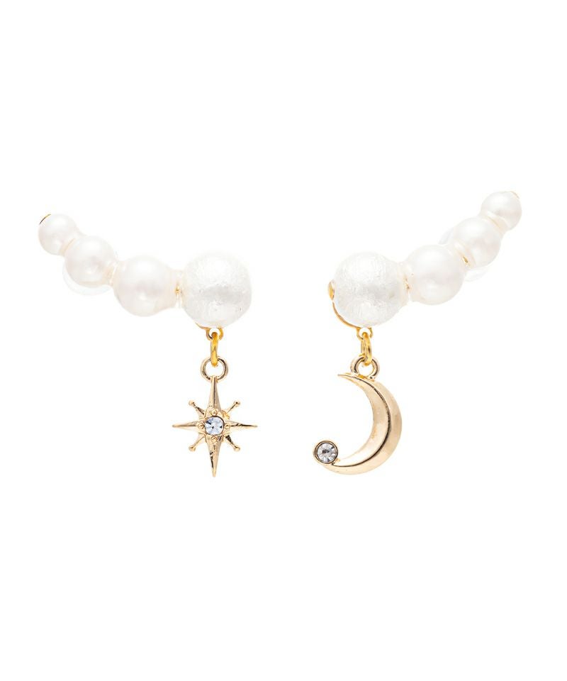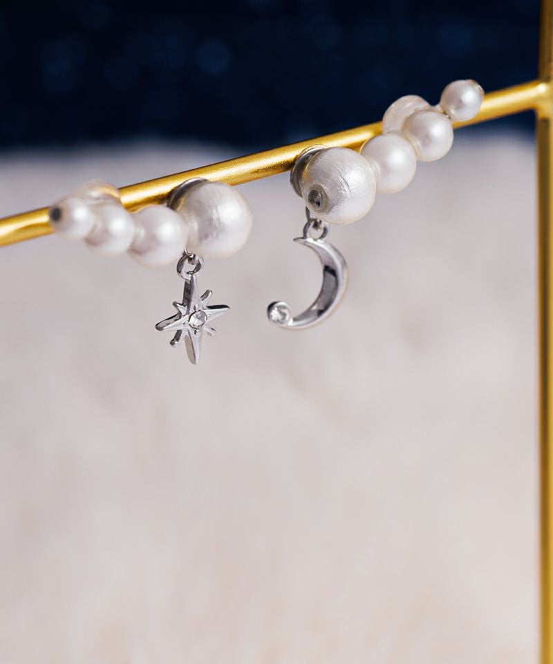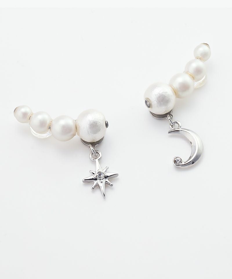 耳に沿うようなデザインのパールにスタームーンのチャームが可愛く揺れて華やかな印象にしてくれます♪