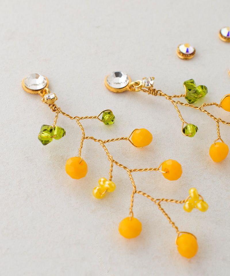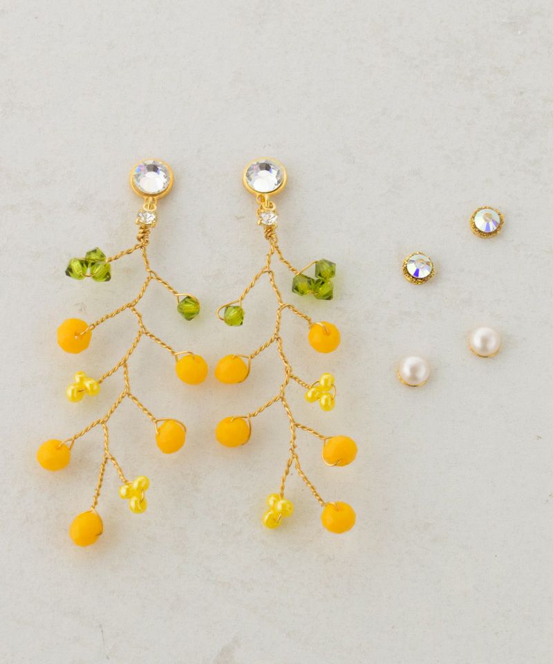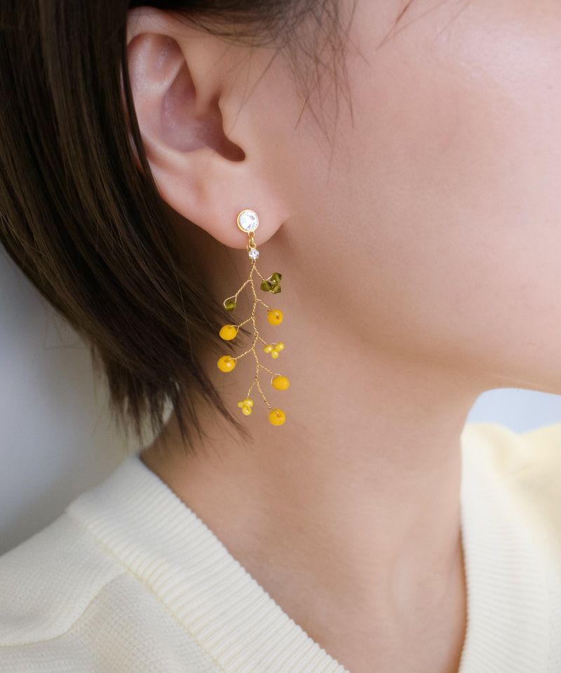 イエローやグリーンのビーズでミモザらしい明るい耳元に♪
