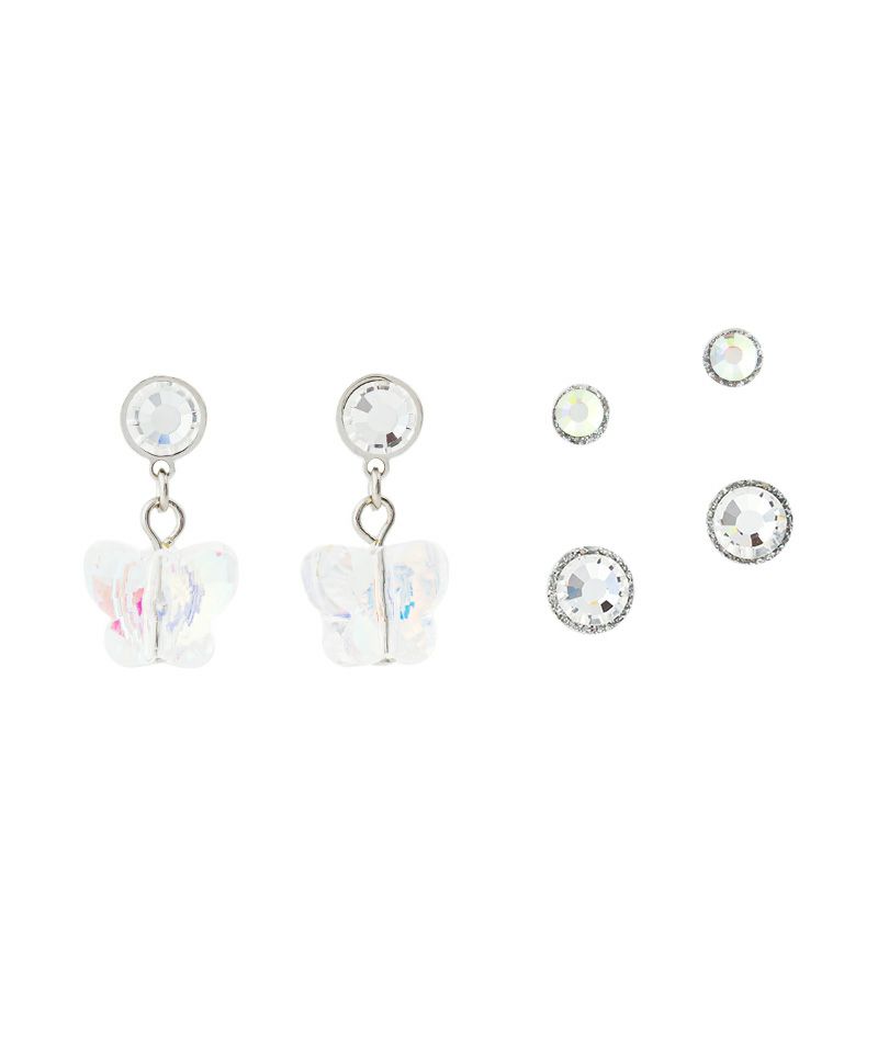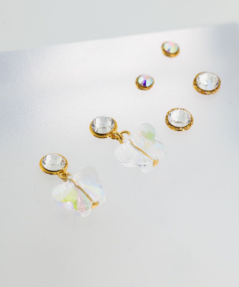 耳元で可愛らしく揺れるバタフライは、光の当たり方によって色味が変化するオーロラカラー。