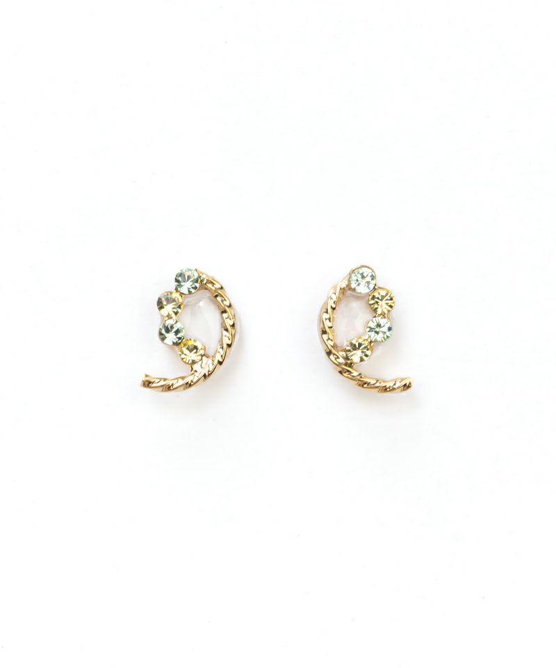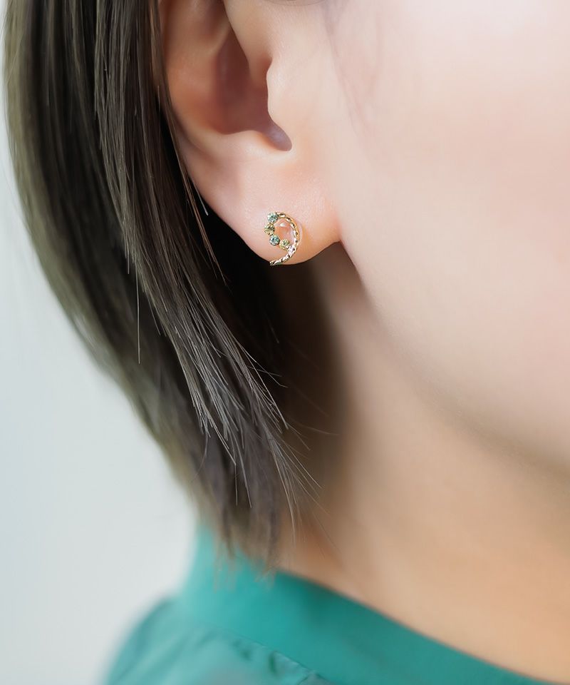控えめに輝く4つのストーンが、リーフモチーフの縁を彩るデザイン。