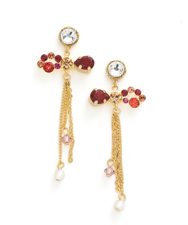リボンの下にのびる3つのチェーンは、あえて不揃いに仕上げているところがおしゃれポイント♪