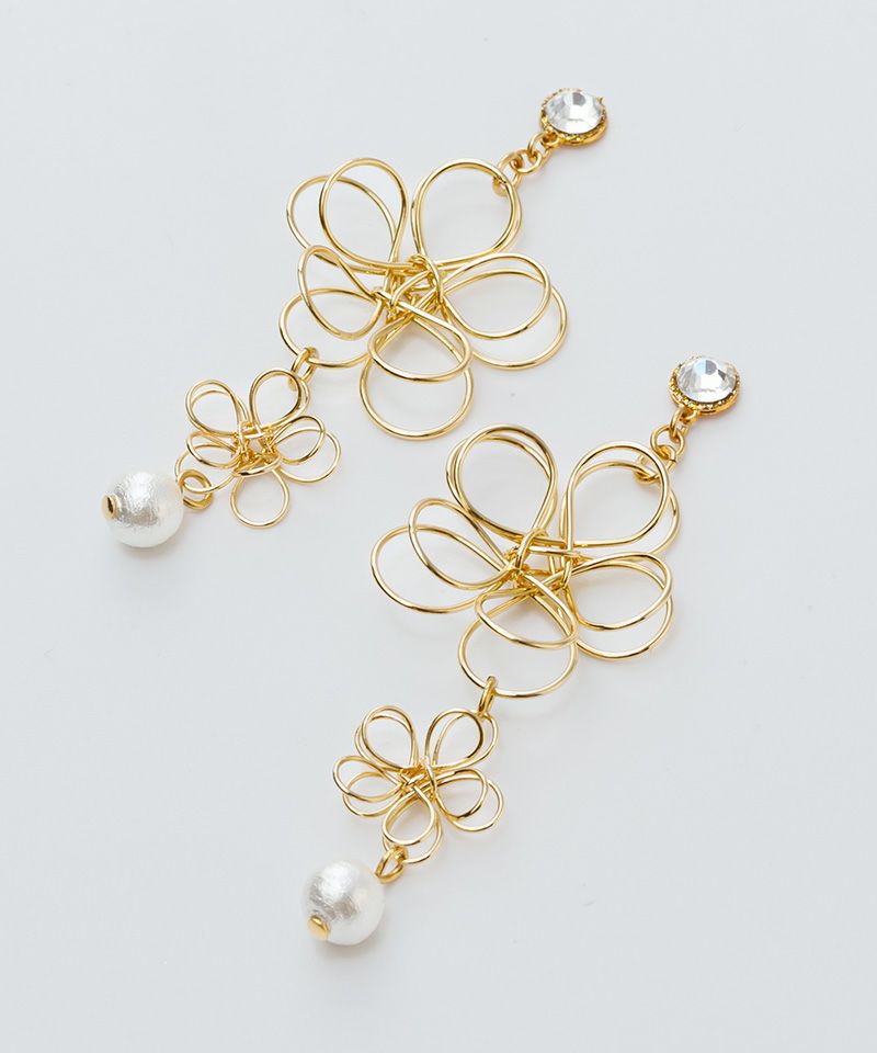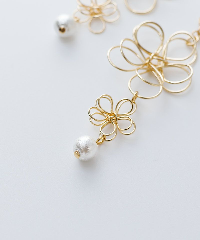 デザインは大きめで存在感がありますが、ワイヤーなのでとても軽いです 大小のお花、パールがとても素敵です