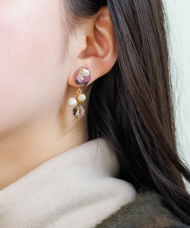 トップのドライフラワーやパールとの組み合わせも女心をくすぐります♪