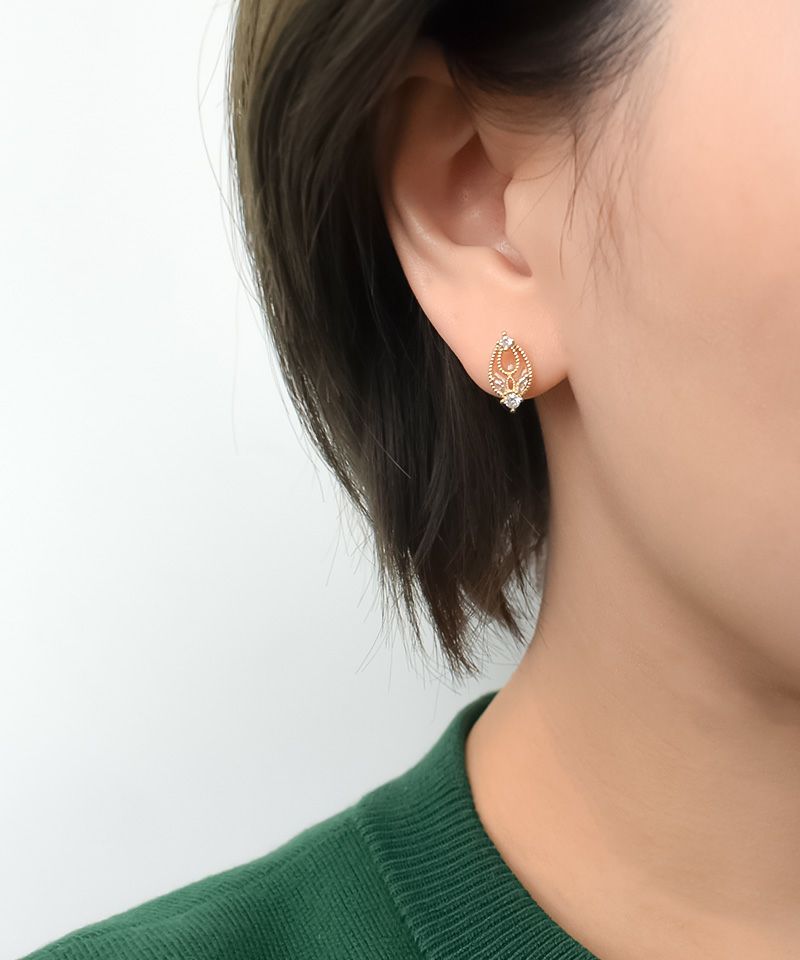 上品なドロップラインに繊細なジルコニアストーンを散りばめ大人可愛い印象へ。