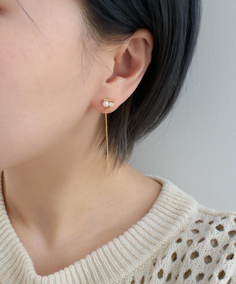 耳元にさりげなく輝くプチビジューと繊細なラインが大人の魅力を引き出すアイテム。